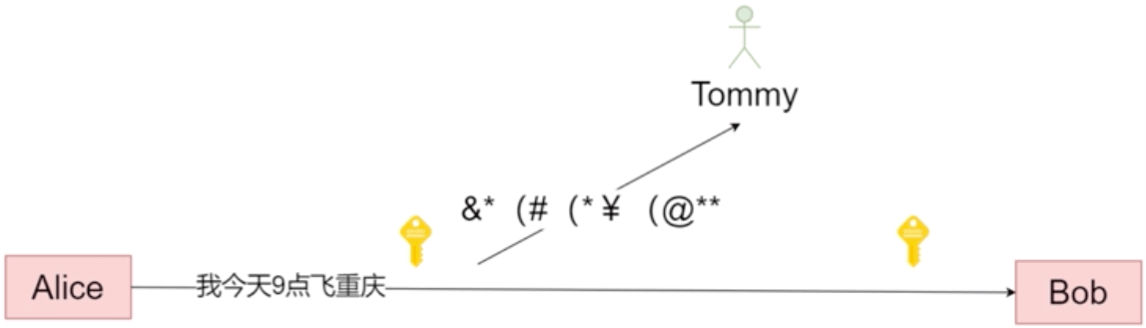 给Alice传的发出内容进行加密,Bob这边在进行解密;加密解密也没回绝对安全;这样给破解人增加了难度。