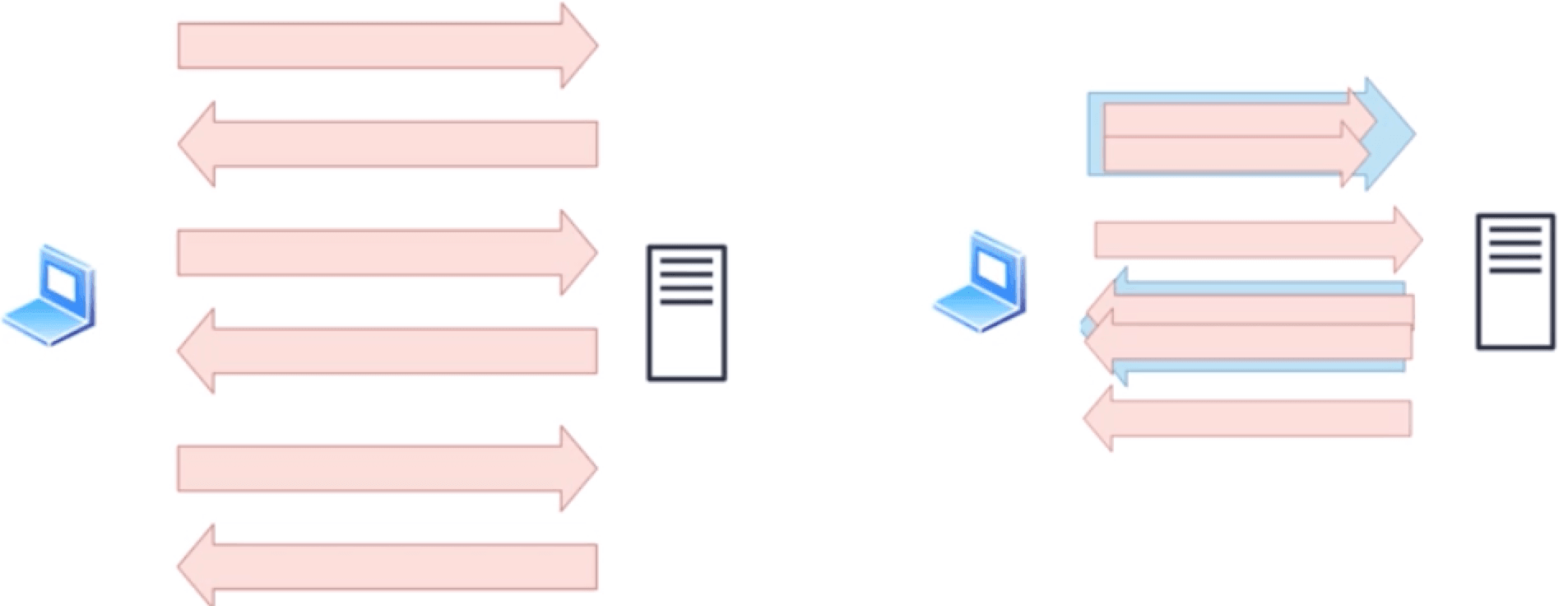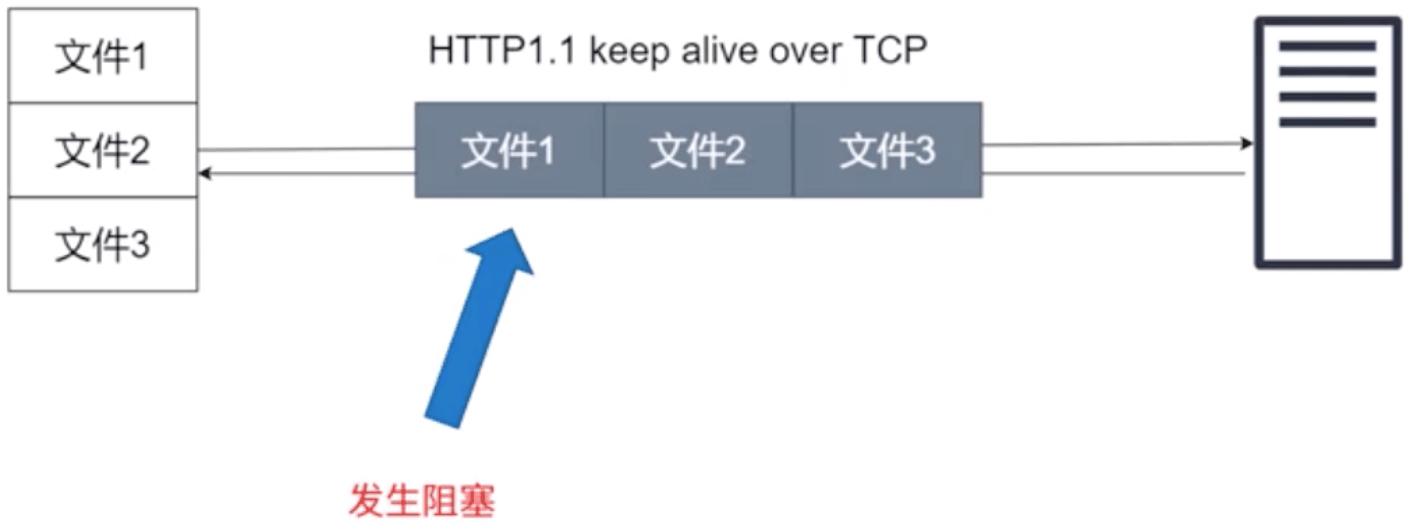 HTTP 1.1多个文件共用一个TCP,这样可以减少tcp握手,这样3个文件就不用握手9次了,不过这样请求文件需要排队,请求和返回都需要排队, 如果第一个文件响应慢,会阻塞后面的文件,这样就产生了对头的等待问题。